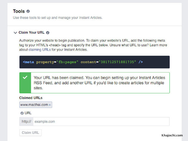 - เราสามารถ Claim URL ได้หลายเว็บ หลาย Sub Domain ขึ้นอยู่กับว่าเรามีเว็บในมือมากแค่ไหน ตัว URL นี้จะต้องเป็นเว็บที่เราใช้ขึ้นบทความที่เป็น Instant Articles ด้วย
