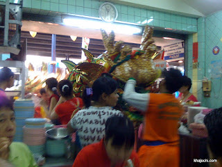 ยัง ยังไม่พอ เจ๊ต่อด้วยการเชิญของใหญ่เลย คราวนี้เป็นมังกรทั้งตัว วิ่งเข้ามาในร้านที่แคบอยู่แล้วก็แคบไปอีก