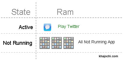 - Background คือโปรแกรมยังอยู่ในแรม ทำงานได้เพียงบริการบางอย่างที่แอปเปิลกำหนด
