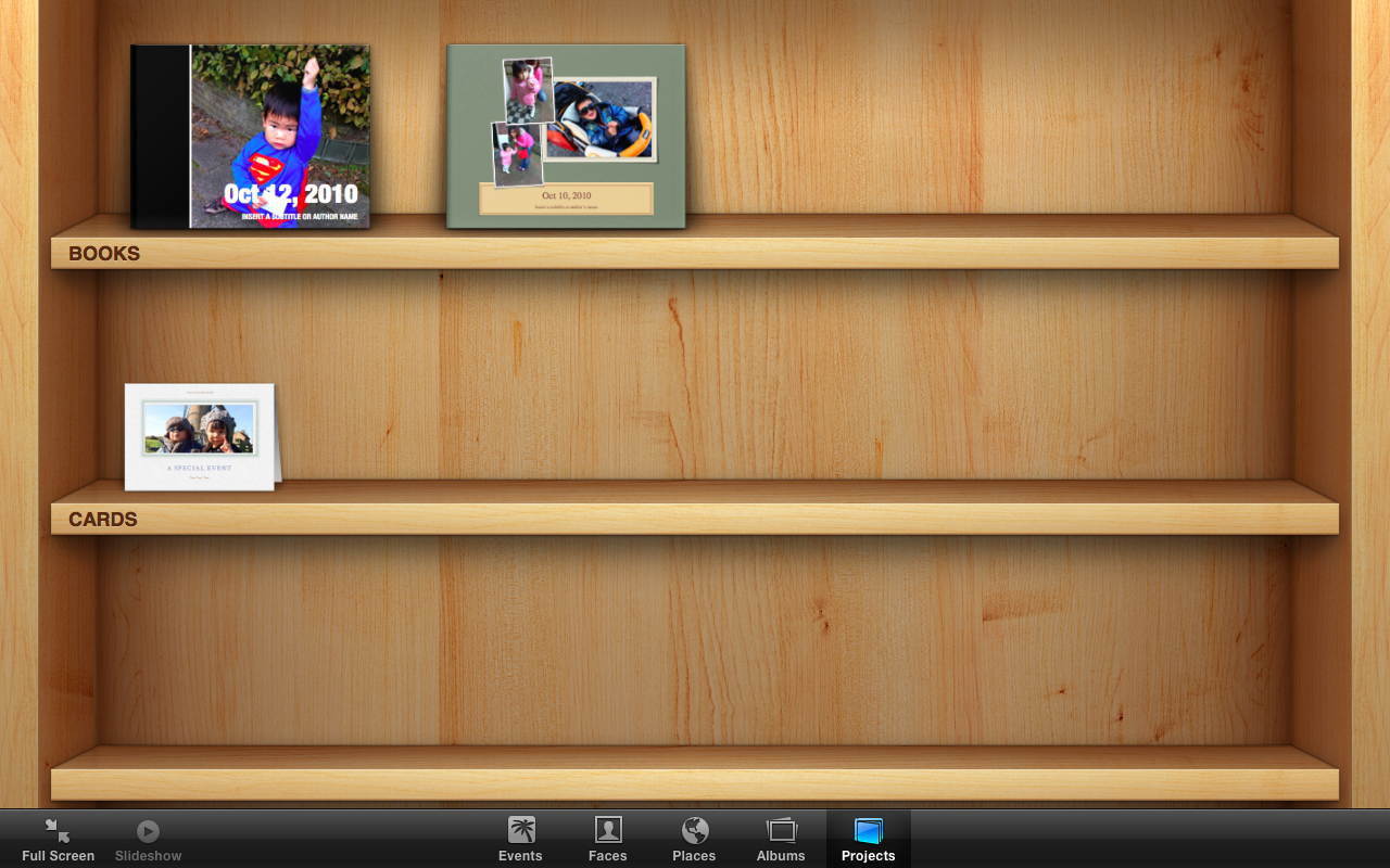 Project จะแสดงทุกโปรเจ็คจากเชลฟ์ไม้ หน้าตาเหมือนใน iBook เด๊ะๆ