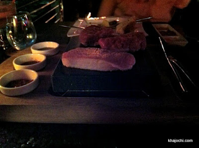 สำหรับ Main Course มาที่นี่ยังไงก็ต้องสั่ง Stone Grill คือจะมาเป็นหินร้อน 400 องศา แล้วเราก็เอาเนื้อเสต๊กไปลงมือย่างเองบนหินร้อน ถ้านึกภาพไม่ออกก็นึกถึง Pepper Lunch ก็ได้ เพียงแต่หินร้อนที่นี่จะไม่สร้างควันเยอะเท่า แล้วก็เนื้อที่มาจะก้อนใหญ่มาก