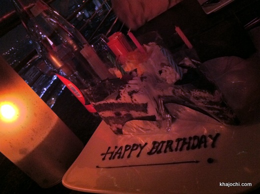 ทานเสร็จ พนักงานเอาเค้กมาเสิร์ฟเหมือนรู้ใจ เอาเค้กจุดเทียนแล้วก็ร้องเพลง Happy Birthday มาพร้อมกัน 3 คนเลย แอบเขิลแต่ก็น่ารักดี