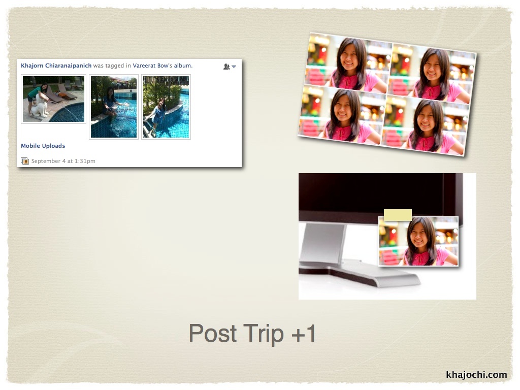 แทนที่เราจะโพสต์รูปที่ไปเที่ยวทะเลบน Facebook แล้วก็ tag เพื่อนแบบคนอื่น ทำไมเราไม่ลอง +1 นั่งรถเมล์ไปเซ็นทรัลลาดพร้าว 12 บาท ข้ามไปฝั่งตรงข้าม แล้วอัดรูป 4P ใบละ 8 บาท