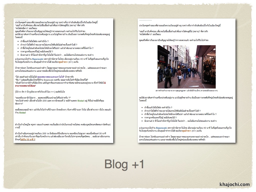 บล็อก +1 ก็คือทำไมเราไม่ลองใส่ภาพลงไปเพื่ออธิบายเรื่องราวดู .. เห็นไหมครับ มันดูน่าอ่านขึ้นเยอะเลย