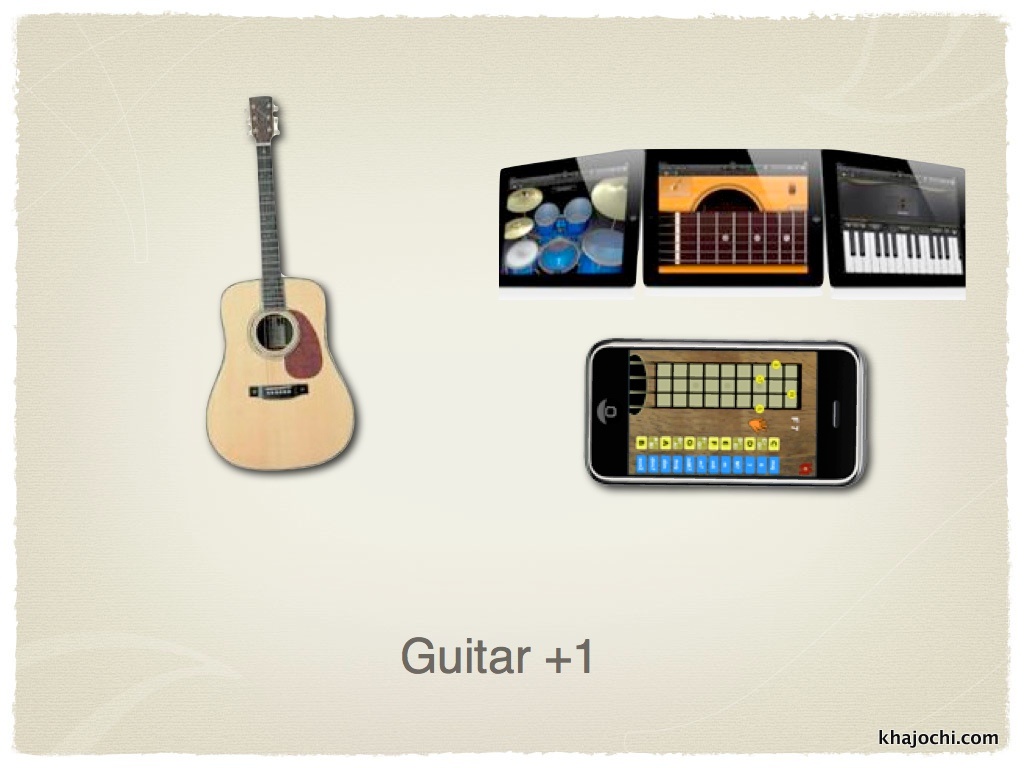 คนอื่นเอากีตาร์ไป +1 คือทำไมเราไม่ลองหัดเล่นดนตรีบนแท็บเล็ตหรือ Smart Phone ของคุณดูบ้าง .. มีนะครับ เพื่อนผมได้แฟนจากการเล่น Ukulele บนไอโฟนมาแล้ว มันดูเจ๋งกว่าตั้งเยอะเลย