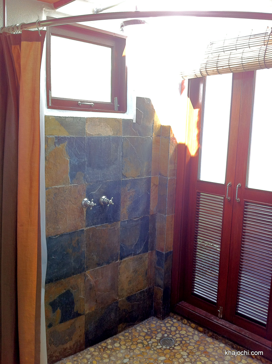 เพื่อความธรรมชาติ เพดานข้างบนฝักบัวเลยไม่มีนะจ๊ะ เปิดโล่งรับแสงจันทร์ตอนกลางคืนได้ หรือใครอยากอาบน้ำฝนตอนฝนตกก็ได้เช่นกัน