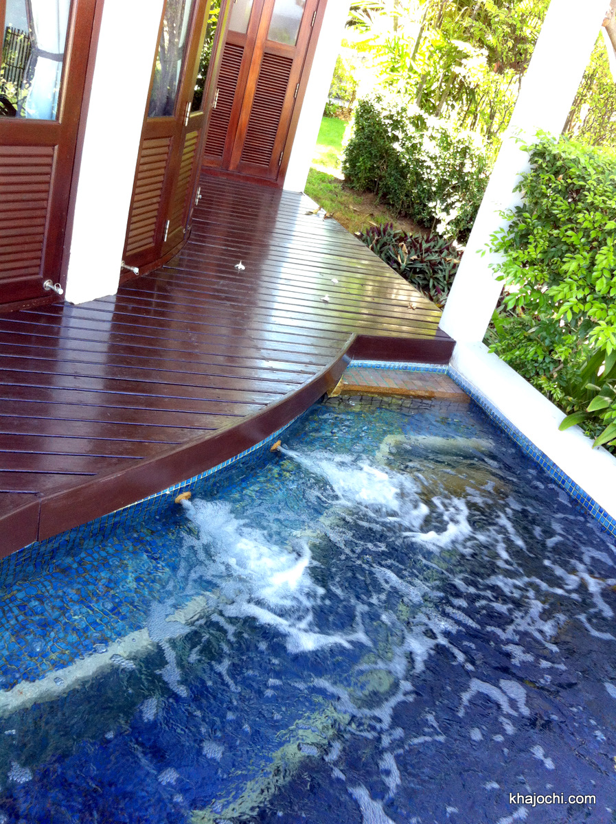 ไฮไลท์เด็ดของห้องพักที่อลีนตาคือทุกห้องจะมีสระขนาดเล็กส่วนตัวให้ด้วย พร้อมที่พ่นน้ำนวดตัว ซึ่งก็คนละอารมณ์กับอ่างจากุซซี่แบบที่ Centara แต่ผมชอบแบบสระมากกว่า