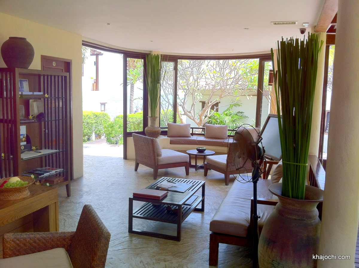 ห้อง Reception เป็นแบบเปิด ตามแบบนิยมของรีสอร์ทริมทะเล