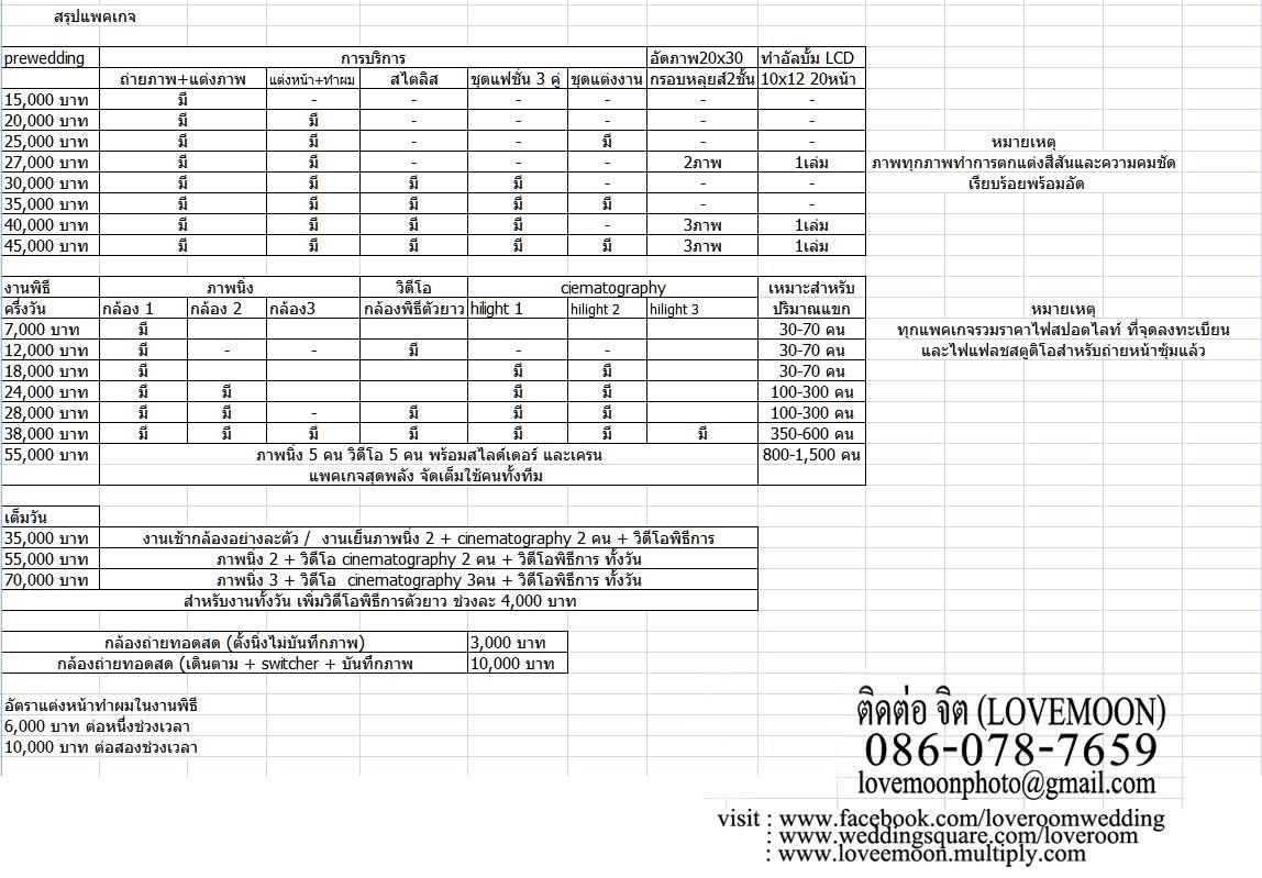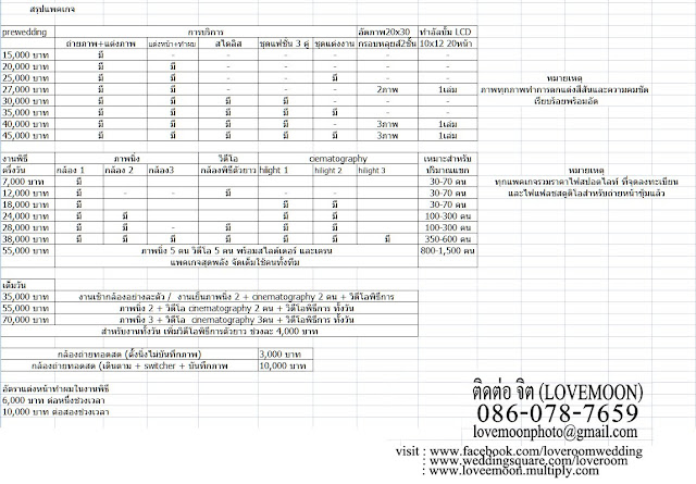 | ราคา Pre Wedding และถ่ายรูปในงานแต่งของ Loveroom (update 31/5/2012) |