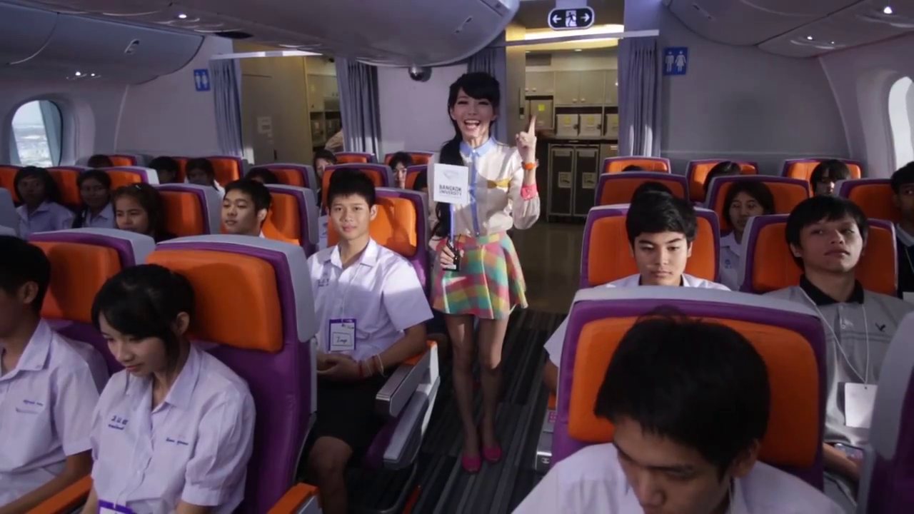 แบบเครื่องบินที่ใช้ก็เป็นรุ่น Boeing 787 รุ่นใหม่ล่าสุดเลยทีเดียว ลองเปิดให้เพื่อนดูก็ตะลึงกัน คือไม่เคยเห็นมหาลัยไหนลงทุนทำกันขนาดนี้ >__<