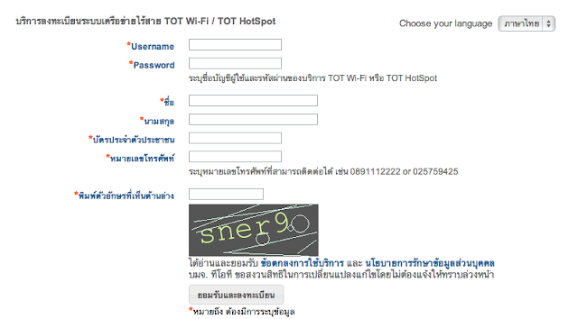 ใช้งานครั้งแรกต้องลงทะเบียนก่อน ก็มีขั้นตอนอธิบายตามในหน้าเว็บครับ กดเข้าไปกรอกข้อมูลเรื่อยๆ จากนั้นก็ใส่ชื่อทั้ง Username และ Password ในบัตรกรอกเข้าไป