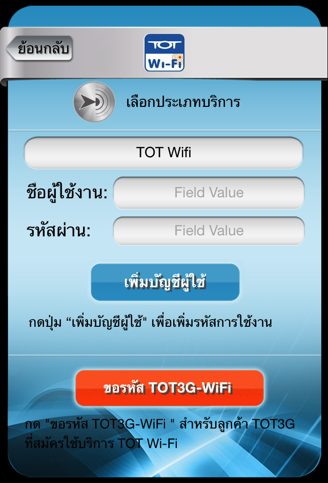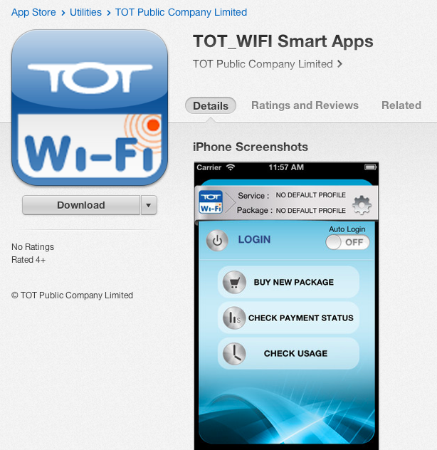 สำหรับถ้าใครใช้สมาร์ทโฟนหรือแท็บเล็ตทาง TOT ก็มีแอพที่ช่วยให้เราเข้าใช้บริการได้ง่ายและรวดเร็วยิ่งขึ้น นั่นคือ TOT WiFi Smart Apps ใช้ได้ทั้ง iOS และ Android