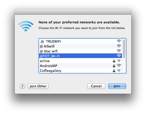 ทดสอบที่สยามพารากอน ผมก็เปิด MacBook ขึ้นมา ก็เจอสัญญาณ TOT Wifi เลย