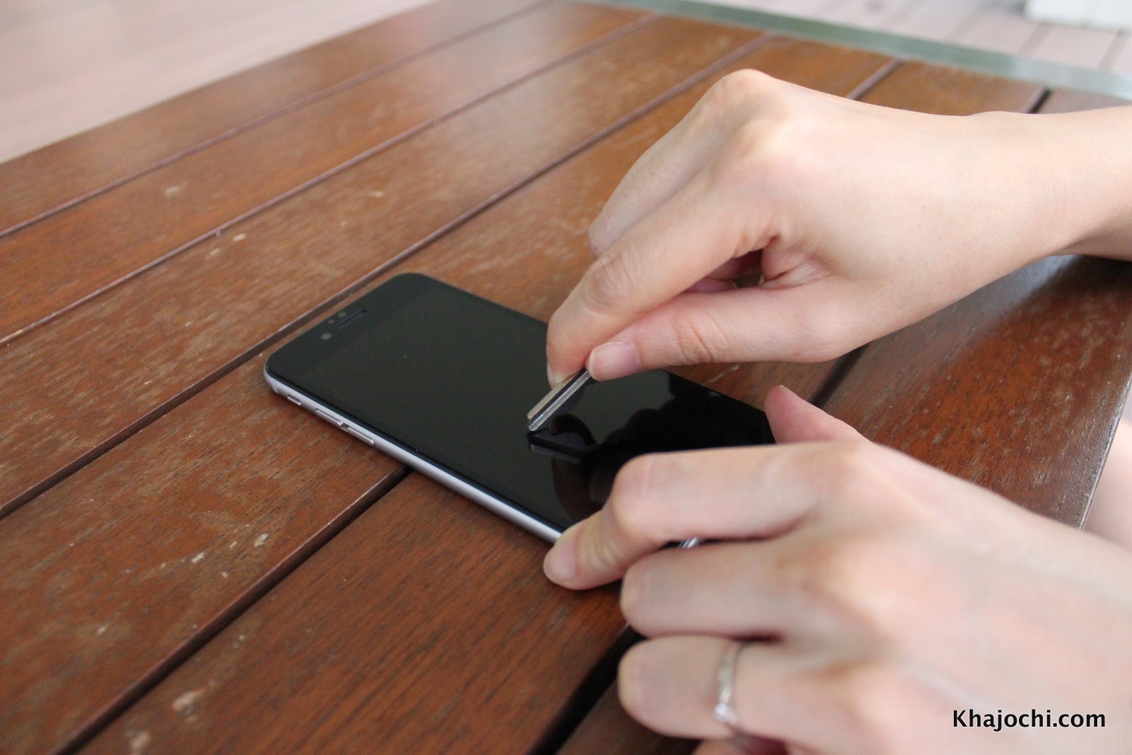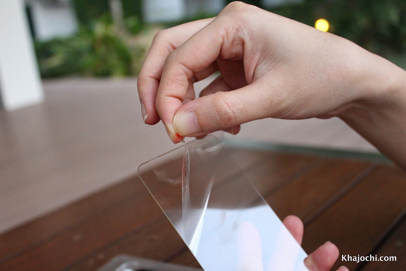 แกะแผ่นพลาสติกออกมา แล้วก็แปะกระจกไปที่จอ