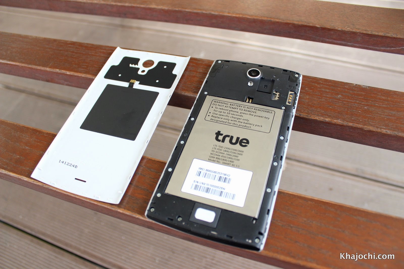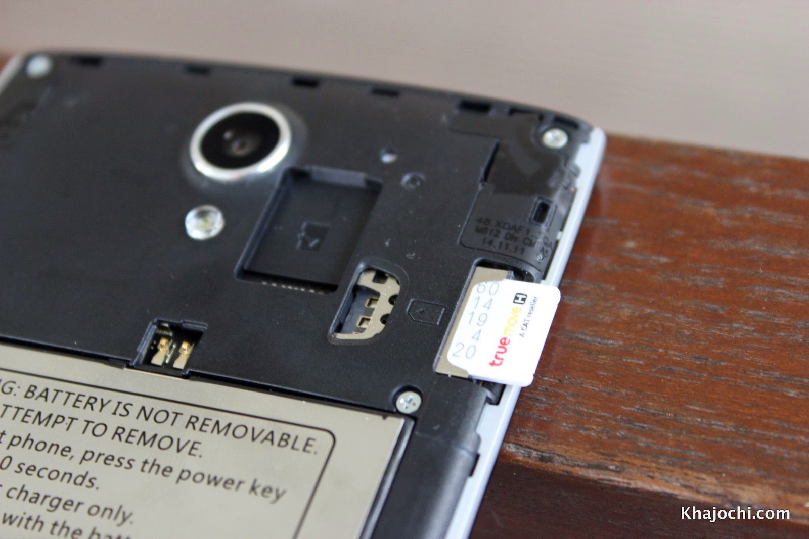 แกะฝาออกมาดู ตัวฝาค่อนข้างบางเล็กน้อย (แกะแล้วเสียวหัก) แบตที่ให้มาขนาดใหญ่หายห่วง 3,100 mAh