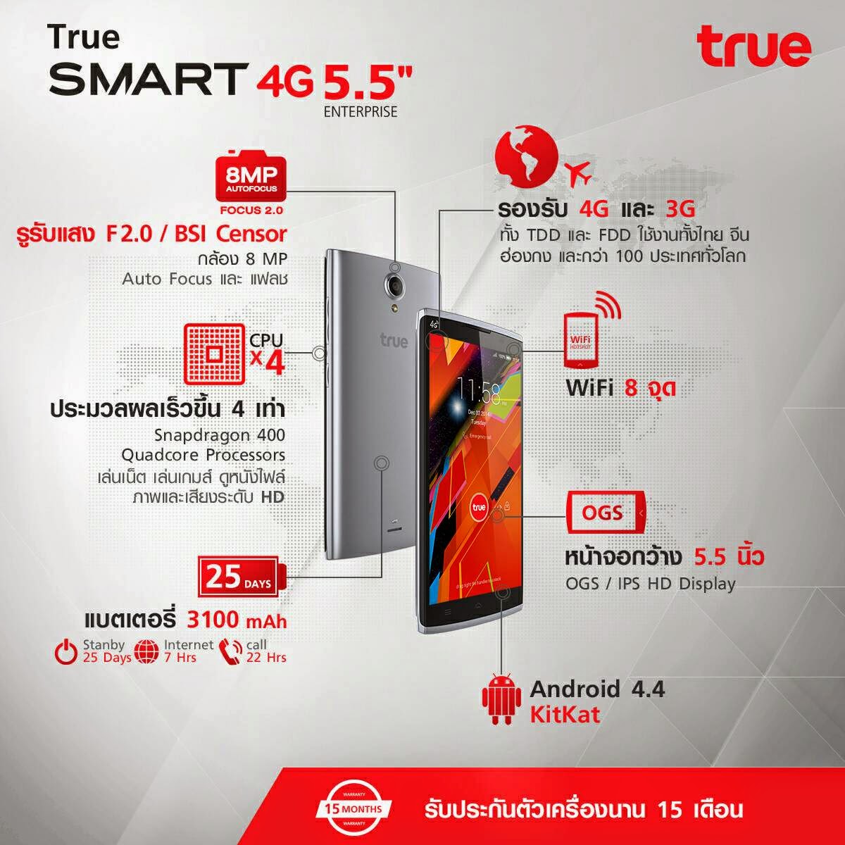- สมาร์ทโฟน True SMART 4G 5.5″ ENTERPRISE