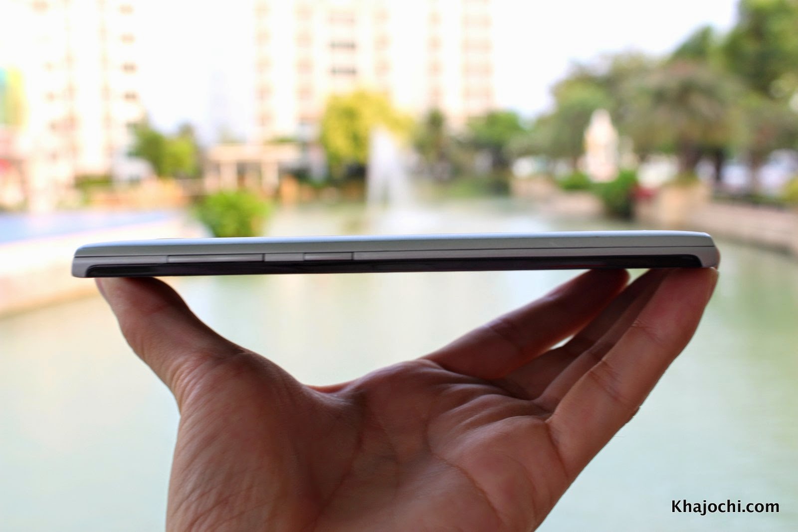 แม้จะจอใหญ่ 5.5 นิ้วแต่บางใช้ได้ ความบางระดับ 8.5 มิลลิเมตร เทียบแล้วบางเท่าๆ กับฝากล้องถ่ายรูปเลย