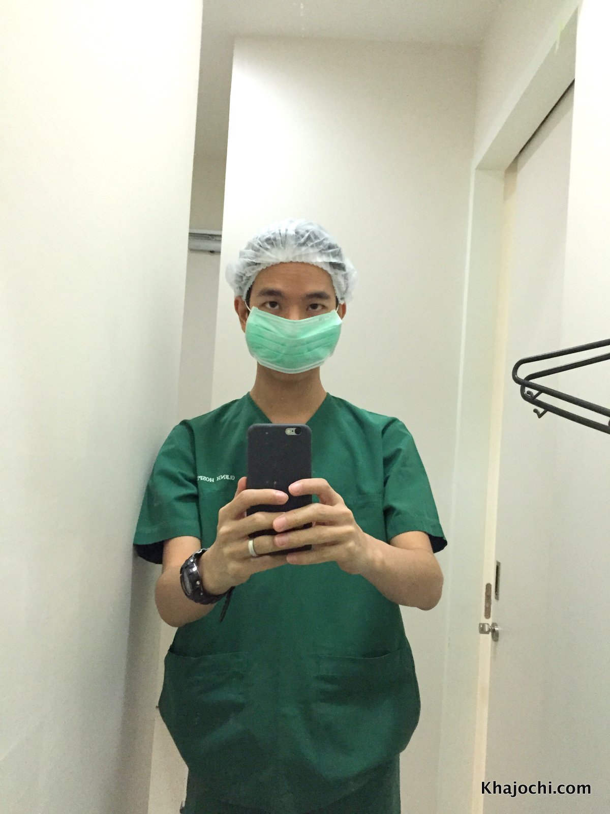 ซักพักเจ้าหน้าที่โรงพยาบาลท่านหนึ่งก็มาขอกล้อง บอกจะถ่ายภาพให้เรานะ ผมก็ให้ไปทั้งกล้องตัวใหญ่ DSLR และกล้องมือถือ iPhone 6