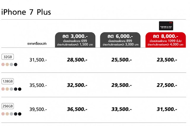 - เงื่อนไข ง่ายๆ เพียงแค่ซื้อ iPhone 7 หรือ iPhone 7 Plus จากทรู และสมัครแพ็คเกจรายเดือน 699 บาทขึ้นไป